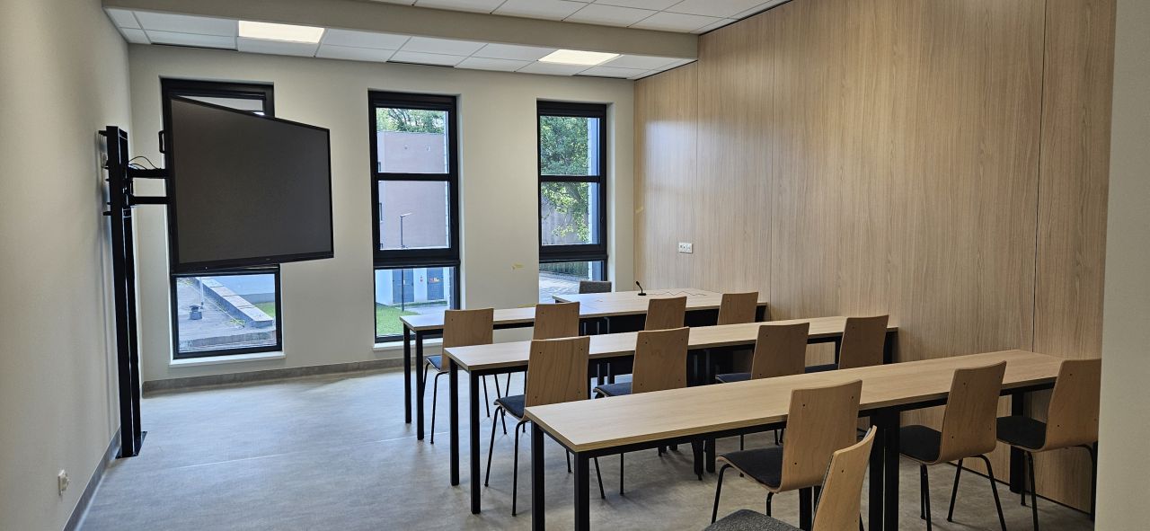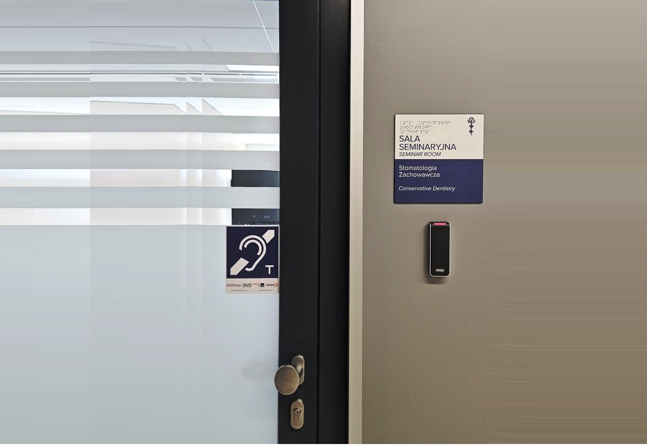 Wszyscy studenci, którzy używają aparatów słuchowych, mogą teraz bardzo komfortowo odbierać słowa wykładowców bezprzewodowo przez swoje aparaty (za pomocą indukcji) w sposób zrozumiały i bez słyszalnych zakłóceń akustycznych. Wszystkie systemy „pętli indukcyjnych” zostały precyzyjnie skalibrowane, zgodnie z norma PN-EN ….