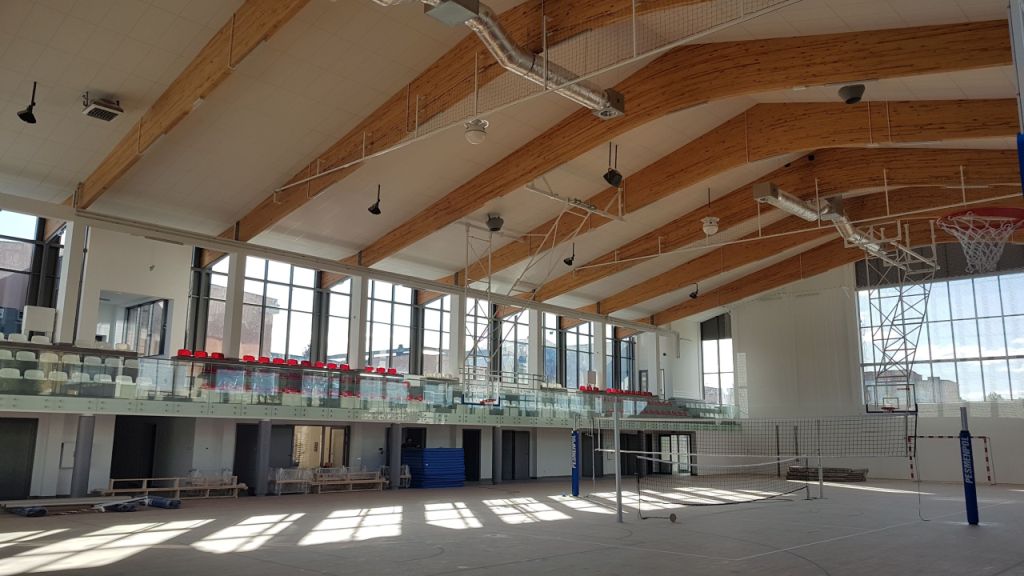Nasze zadanie polegało na zaprojektowaniu systemu nagłośnienia, który pozwoli uzyskać czytelny dźwięk wysokiej jakości o dobrej zrozumiałości mowy w trudnych warunkach akustycznych hali sportowej.